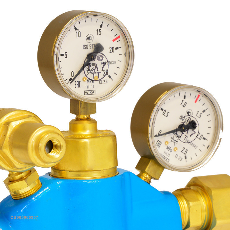 Редуктор РКЗ-500-2 одноступенчатый, обладает высокой пропускной способностью 500 куб. м/ч и оснащен 2мяманометрами для контроля входного и выходного давления. Подходит для работы с кислородом. Может использоваться в диапазоне температур от +5 до +50 °C.