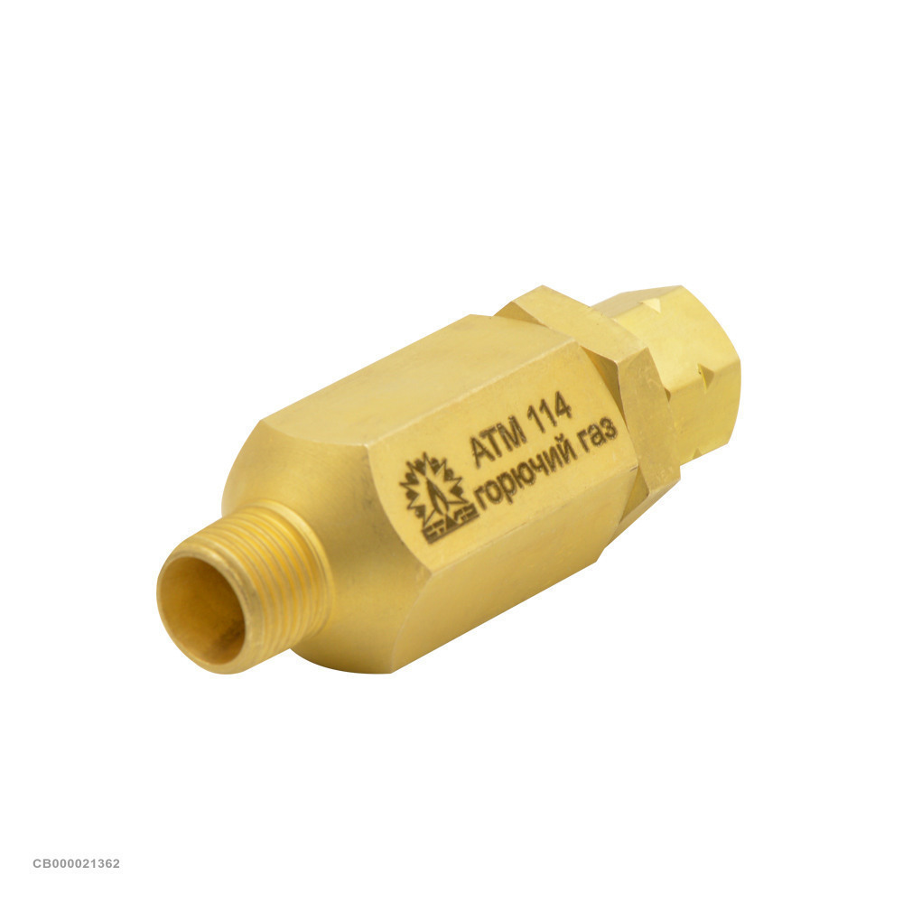 Клапан обратный металлургический НОРД-С АТМ 114, предотвращающий обратный поток газа и пламени при газопламенной обработке металлов. Можно использовать с резаками АТМ15 и АТМ128. Широко применяется в металлургической промышленности.