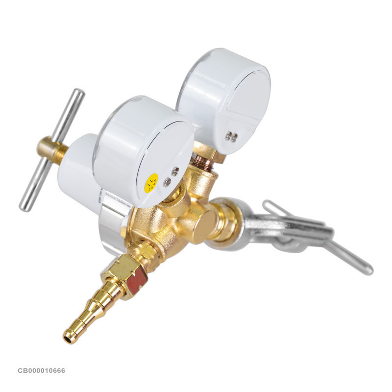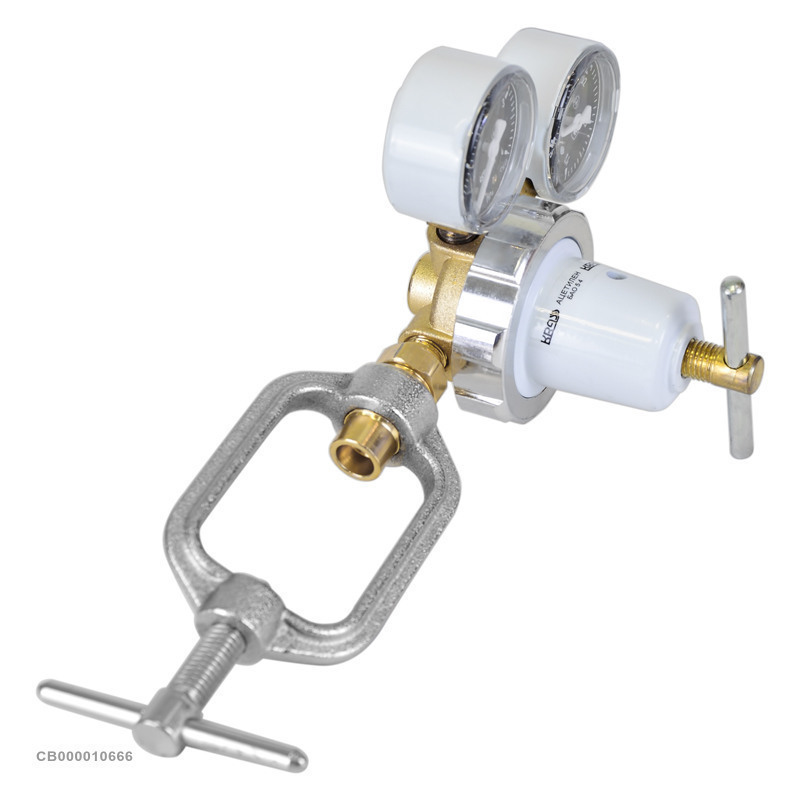 При выполнении газопламенных работ с использованием ацетилена используется редуктор ацетиленовый KRASS БАО-5-4. Он предназначен для контроля и сокращения давления газа (входное давление составляет 25 бар), поступающего из газового баллона. Такая функция обеспечивается за счет наличия в конструкции специального клапана. Устройство способно без участия сварщика поддерживать давление газа на заданном уровне. Редуктор оснащен двумя манометрами, благодаря чему рабочий может контролировать давление газа в баллоне и в резаке. В первом случае давление контролируется манометром высокого давления, степень сжатия газа в резаке определяется манометром низкого давления.