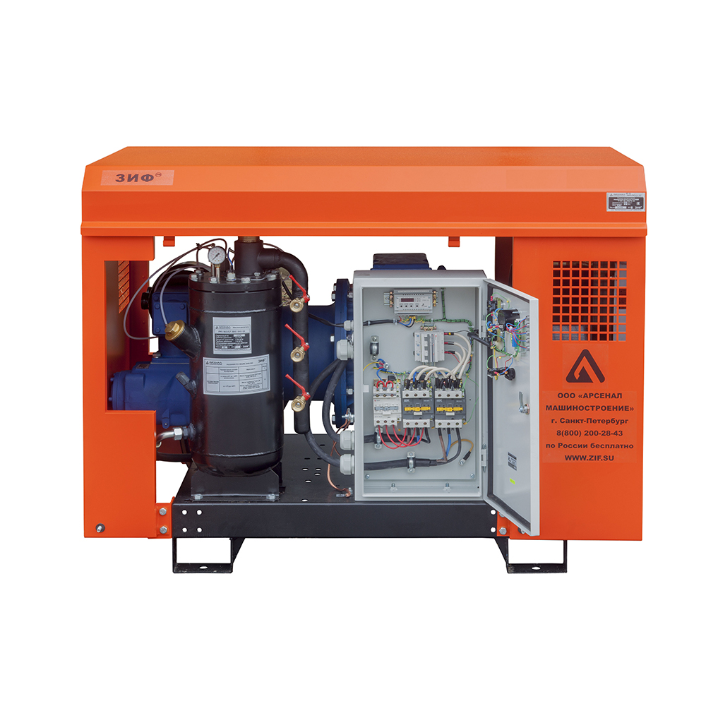 Электрические станции ЗИФ-СВЭ без кожуха могут быть полезны, когда размещение компрессора в производственном помещении по различным причинам невозможно или неудобно.