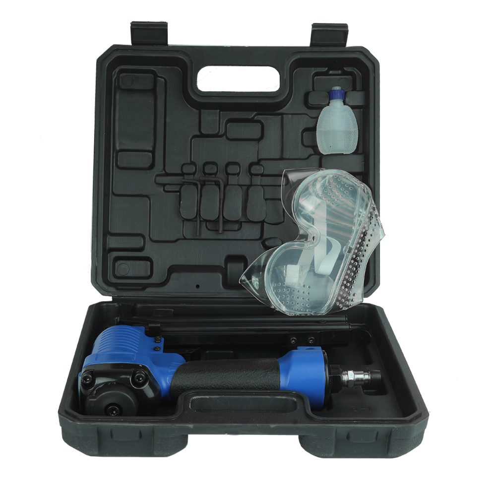 Нейлер пневматический FROSP F32 штифто-шпилькозабивной — удобный инструмент для выполнения быстрого монтажа при работе с самыми разными конструкциями. Этот пневмомолоток для забивания штифтов/гвоздей имеет широкую область применения в строительстве, ремонте, монтаже, производстве разного рода продукции. Относится к пневмооборудованию и работает от энергии сжатого воздуха. Этот молоток пневматический имеет небольшие габариты и малый вес — всего 1,08 кг. Это в сочетании с удобной конструкцией делает применение гвоздезабивателя простым и удобным. Пневмопистолет оснащен обоймой на 100 штифтов.
