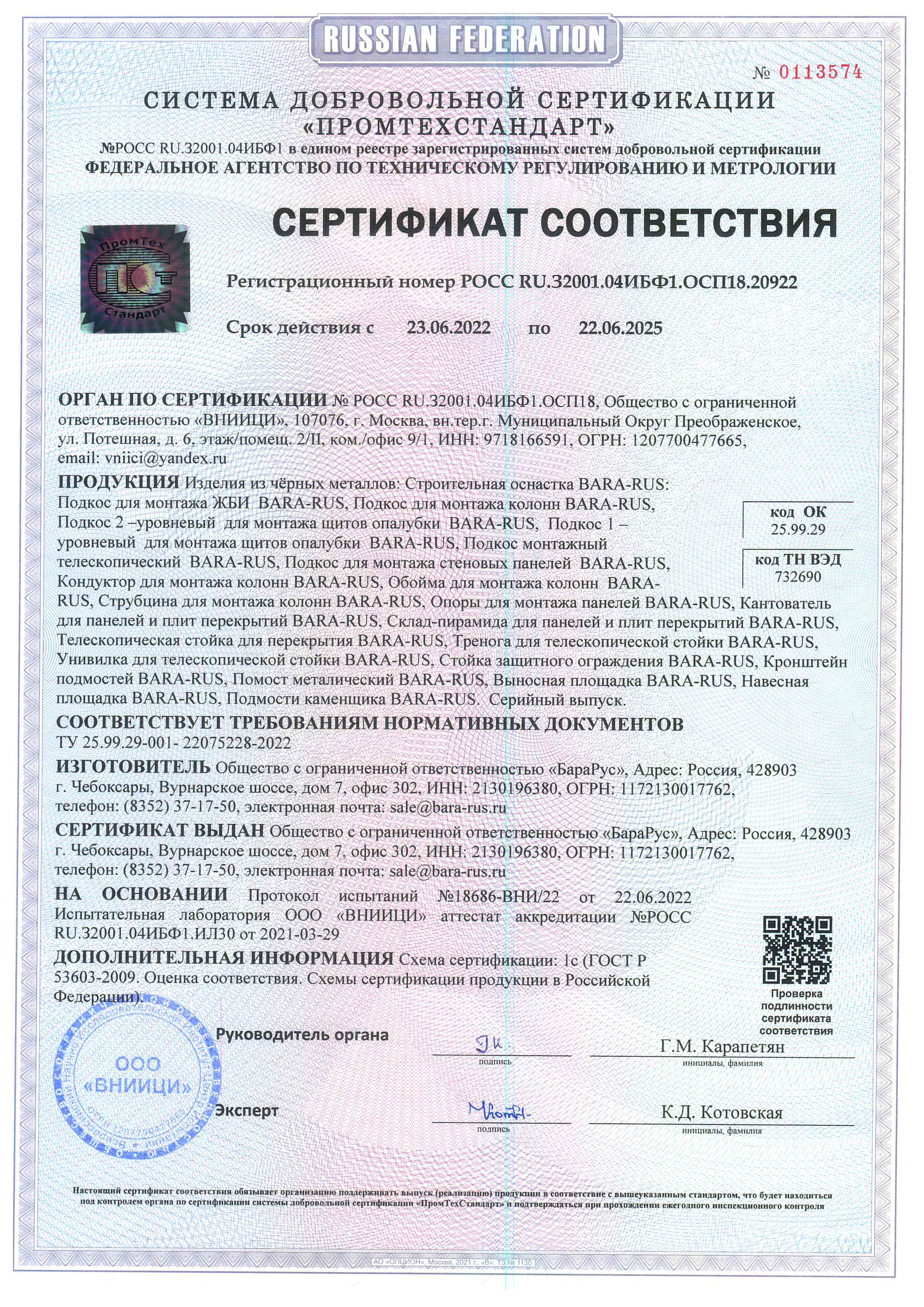 • Подкос 1 –уровневый для монтажа щитов опалубки BARA-RUS