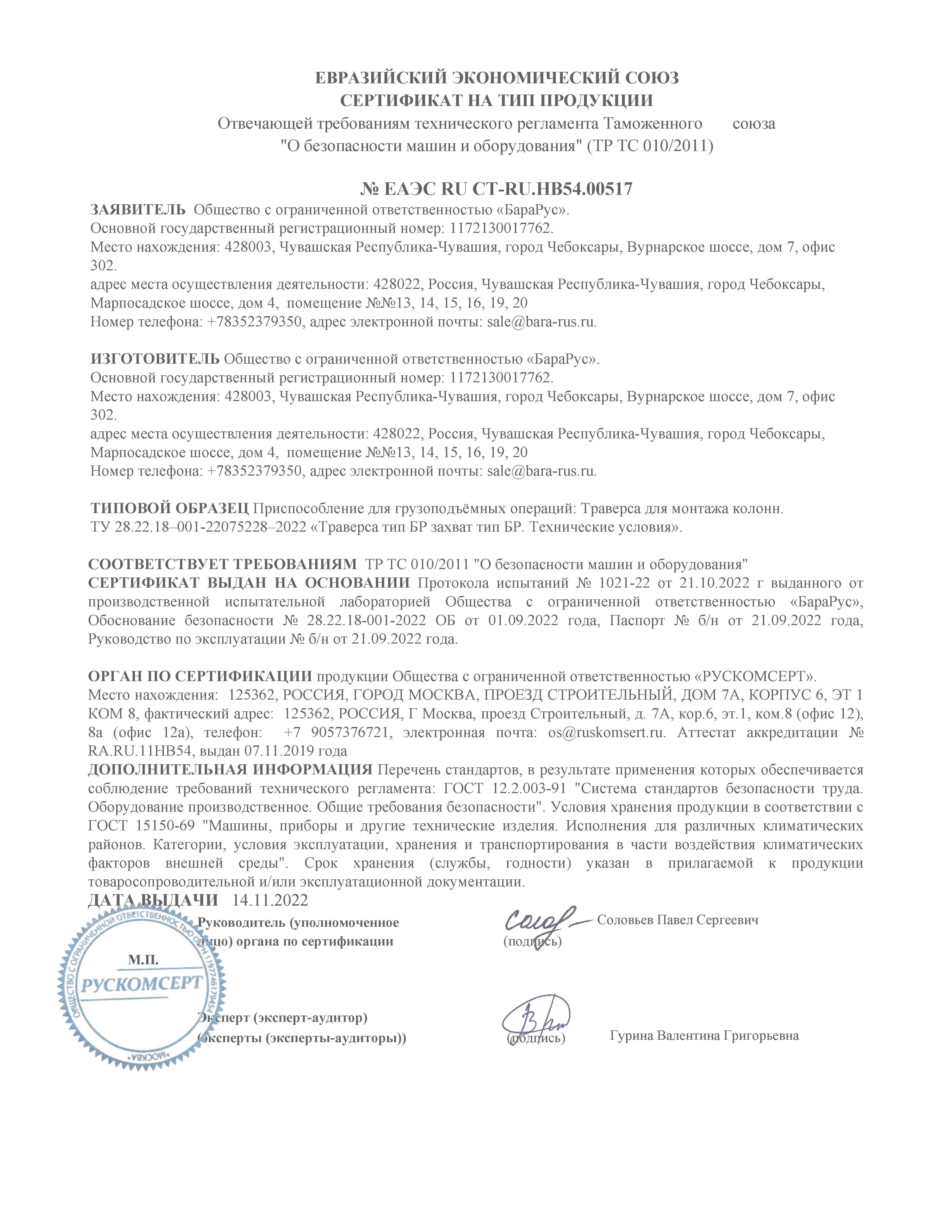 • Кантователь для панелей и плит перекрытий BARA-RUS